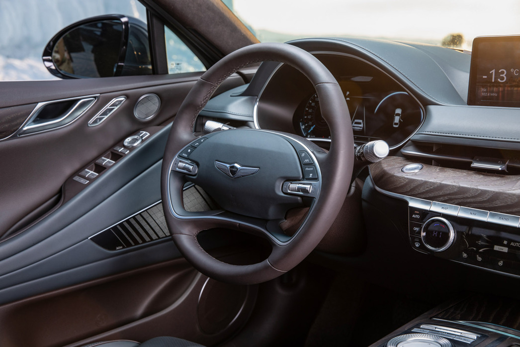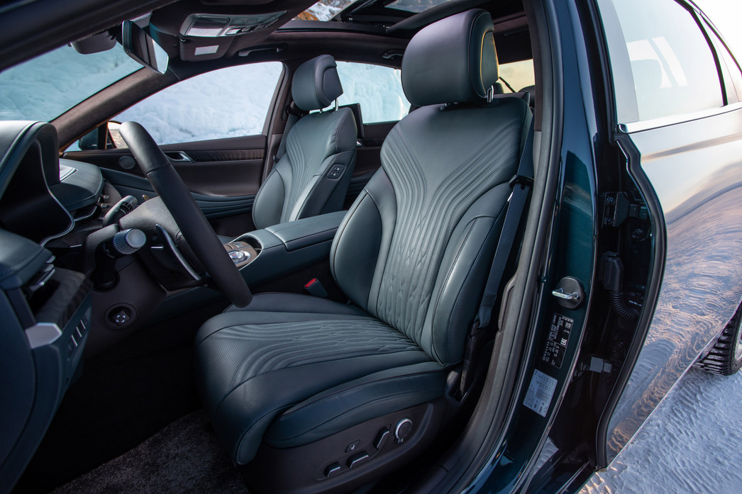 Архитектура платформы у Дженезиса классическая: с продольным расположением силового агрегата и приводом на задние колёса. Другое дело, что для российского рынка все версии оснащаются полноприводной трансмиссией, где мощность на переднюю ось передаётся многодисковой муфтой с электронным управлением. На выбор предложены два бензиновых турбомотора: рядная «четвёрка» 2.5 мощностью 249 сил и V6 3.5 с отдачей 379 л. с.