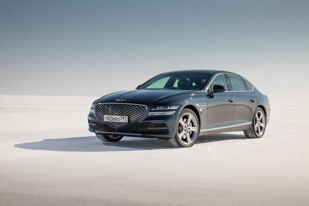 Впрочем, не стоит горевать о багажнике. Genesis берет другим — высоким стилем. Если в прошлом поколении G80 был безликим, то его последователь стал по-настоящему яркой личностью. Обкатав на флагманском «джи-девяностом» дизайн со сплит-оптикой и геральдическим щитом огромадной решетки радиатора, корейцы экстраполировали его и на остальные модели. Вот и соплатформенные седан G80 и кроссовер GV80, пришедшие в Россию одновременно, выполнены в едином стилистическом ключе. Да и парочка форматом поменьше — обновленный G70 и дебютант GV70 — на лицо будут точно такими же.