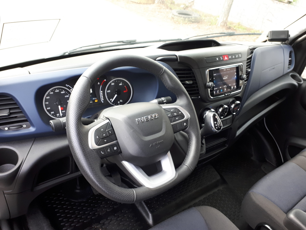 У руля теперь электроусилитель, который позволил установить на грузовик множество электронных помощников водителю. У тестового Daily есть система автоторможения, адаптивный круиз-контроль, помощник при движении на уклоне и система противодействия боковому ветру.