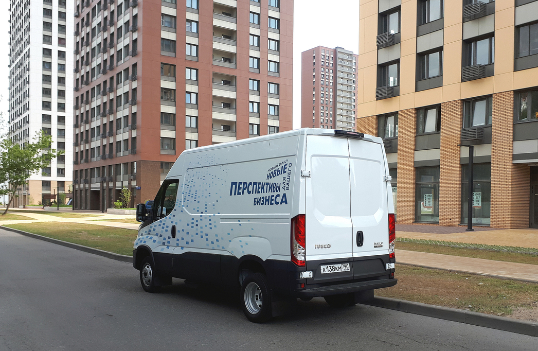 У меня на тесте самый компактный вариант Daily, на котором можно передвигаться, имея права категории «B». Под его капотом работает 3-литровый битопливный мотор с отдачей в 135 сил. Он, конечно же, на метане (CNG), а бензин нужен, скорее, как аварийный вариант, когда в дороге закончится газ, а до заправки еще надо дотянуть.