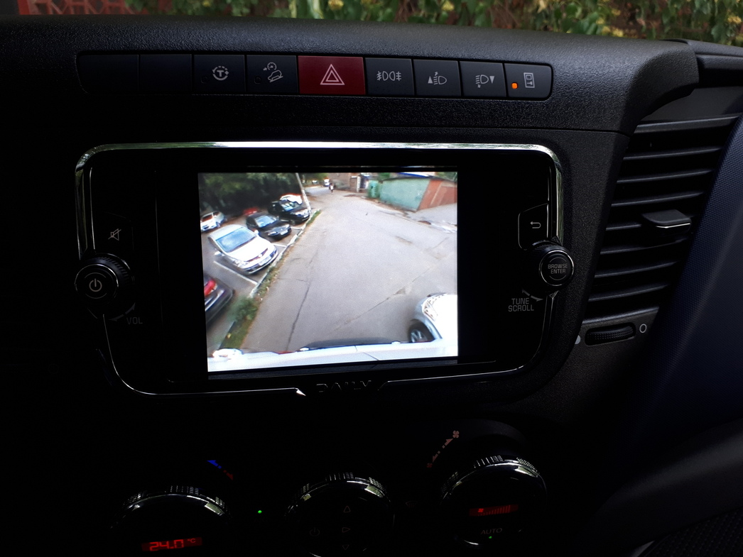 И слава автомобильным богам: тут есть парковочная камера и парктроники. Она хоть и без разметки, зато с широкоугольным объективом, что сильно облегчает маневрирование во дворах и на стоянках.