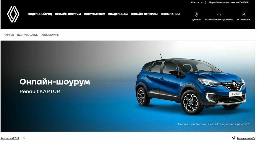 Компания Renault стала первой автомобильной компанией, запустившей в нашей Необъятной собственный онлайн-шоурум. Все началось летом 2016 года, когда покупатели получили возможность приобрести, не выходя из дома, кроссовер Kaptur. Что значит приобрести? Выбрать нужную комплектацию и наиболее подходящий дилерский центр, а также внести предоплату любой банковской картой.