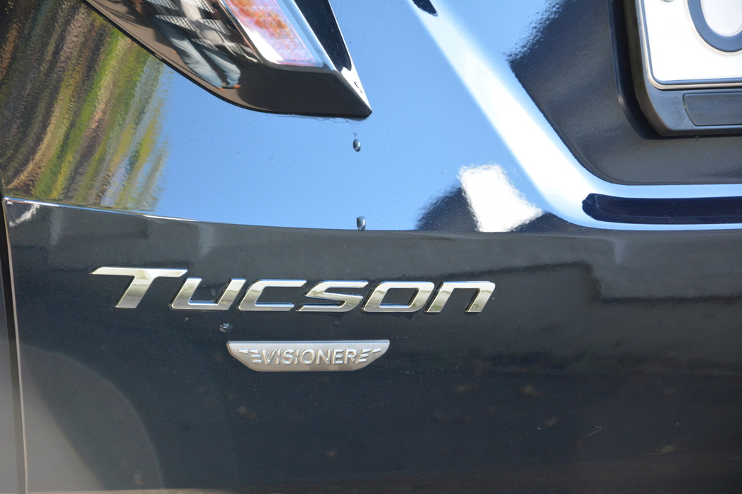 А вот «ломано-мятые» грани боковых панелей Tucson воспринимаются уже как нечто само-собой разумеющееся: с ними мы познакомились на Elantra. Прикольно, кстати, вышло с эмблемой Hyundai на пятой двери машины. Она тут встроена в нижнюю часть остекления таким образом, что кажется, будто это «кнопка» для подъема стекла отдельно от остальной двери. Подобная фишка иной раз встречалась на крупных внедорожниках. На Tucson этой опции нет: проверено.