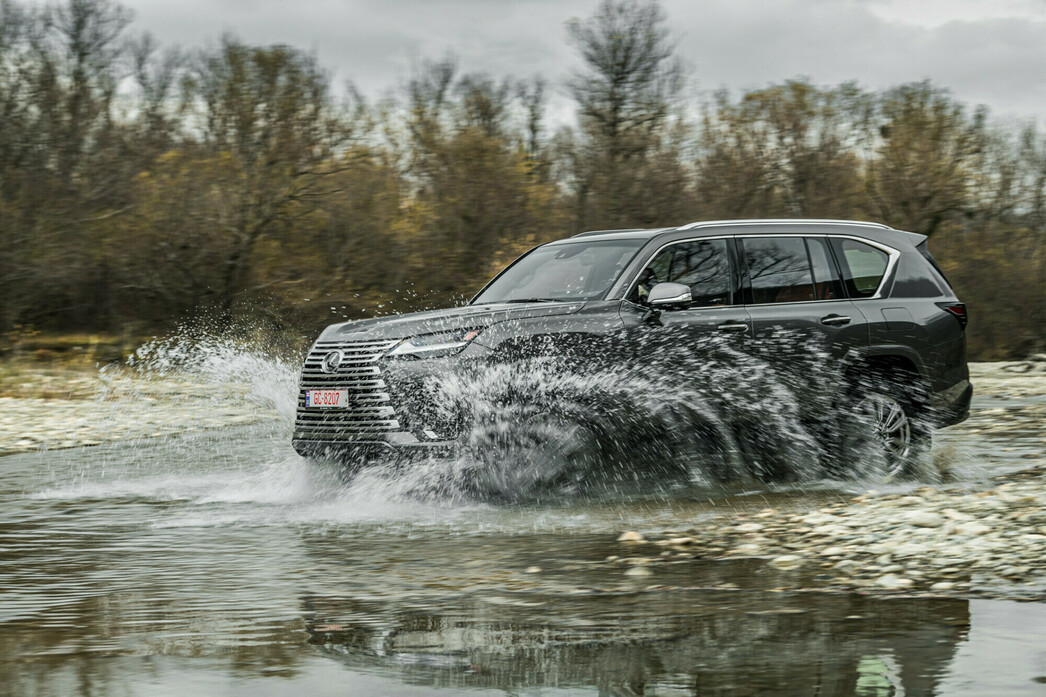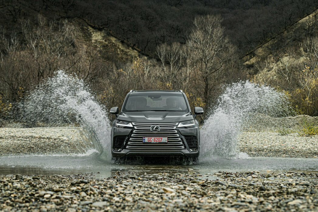 Теперь черед выехать на бездорожье, благо в Грузии, где проходит тест-драйв новинки, есть, где помесить грязь. Внедорожный арсенал у LX приличный: есть «понижайка» и бездорожный круиз-контроль. Блокировка межосевого дифференциала положена всем модификациям и включается кнопкой на центральном тоннеле, а межколесные блокировки — прерогатива топовых версий. В общем, на таком внедорожнике просто позорно застрять. Он этого и не позволяет, отважно штурмуя направления различной степени тяжести.