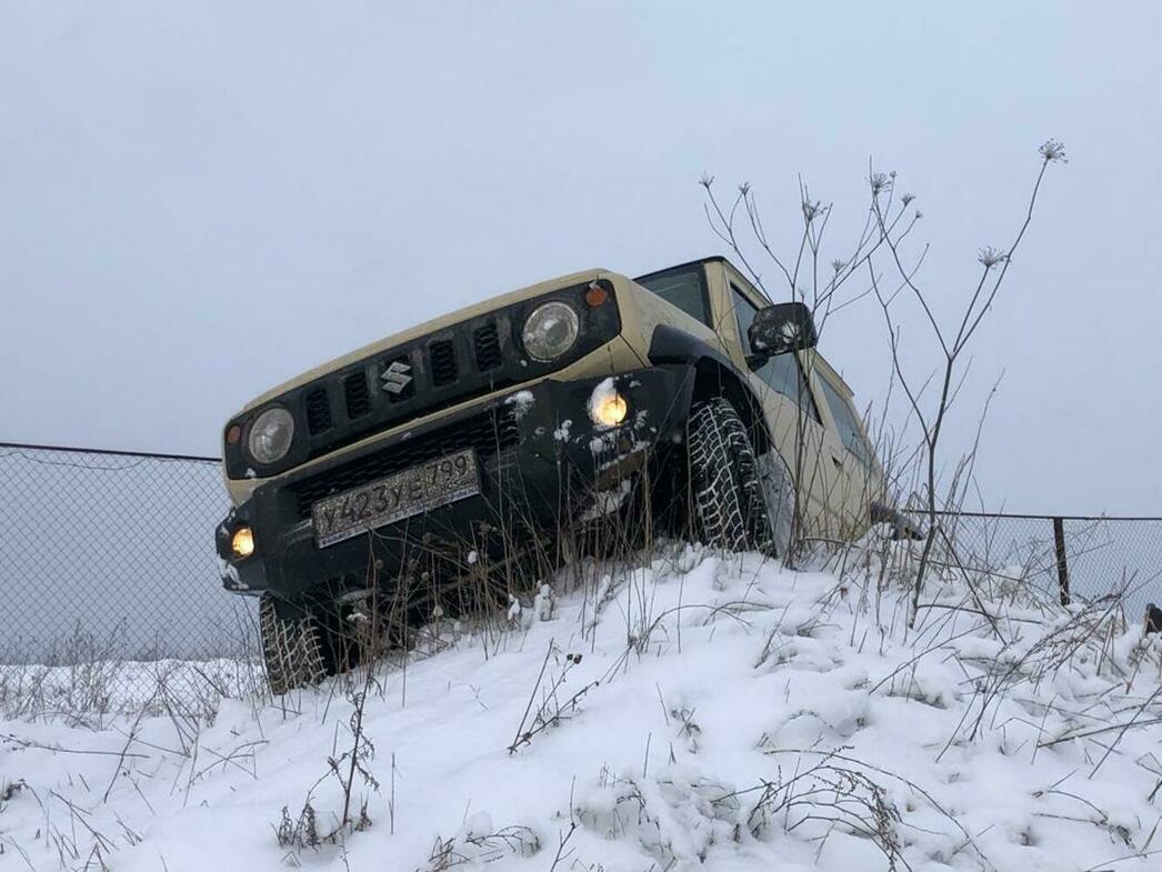 Suzuki Jimny — это как раз тот случай, когда ты специально пытаешься найти место посложнее, чтобы его преодолеть, и ему это всегда удается! Понятно, что закопать можно любой автомобиль и даже танк, но после сильнейшего снегопада с раскисшей глиной подо льдом, Jimny играючи пробирался через непаханное поле по пояс в рыхлом снегу. И нигде ни разу даже не зацепил ни за что днищем. Одним словом, мечта любителя оффроуда.