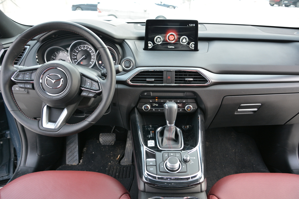 Хотя одно «но» тут тоже имеется. Оказалось, что, при всем богатстве комплектации, у Mazda CX-9 Noir отсутствует электроподогрев ветрового стекла. Беспроводные Apple CarPlay и зарядка телефона есть, а «грелки» для «лобовухи» — нет! Машина-то большая: чтобы как следует отшкрябать ото льда середину стекла, приходится тянуться, рискуя обтереть одеждой все передние крылья. Или надобно заранее обзаводиться скребком для льда с особо длинной ручкой.