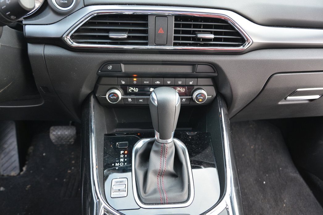Что касается динамики Mazda CX-9 Noir, то достаточно сказать, что «по паспорту» она разгоняется до 100 км/ч за 8,6 секунд. Для крупного кроссовера этого — «за глаза». По крайней мере, лично я, будучи хроническим любителем «придавить газульку в пол», ни разу не почувствовал какого-то дискомфорта из-за недостатка мощности. Турбированный 2,5-литровый 230-сильный движок хоть и выглядит по-сиротски маленьким в просторном подкапотном пространстве кроссовера, выдает приличный «момент» уже с достаточно малых оборотов. Да и 6-ступенчатый «автомат» в полноприводной трансмиссии тут более, чем грамотно настроен на работу с мотором.