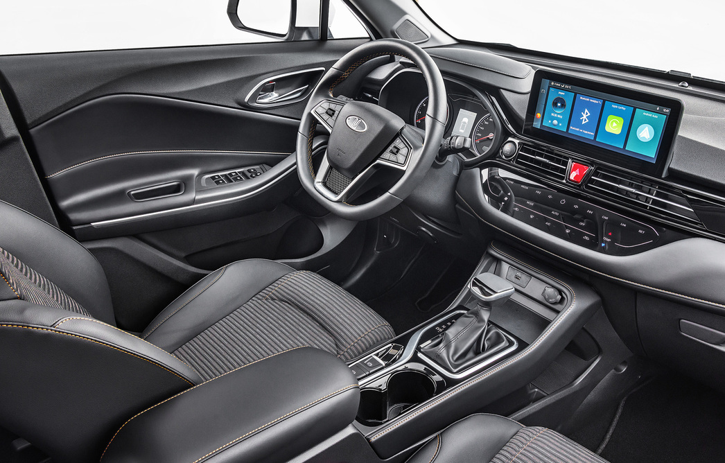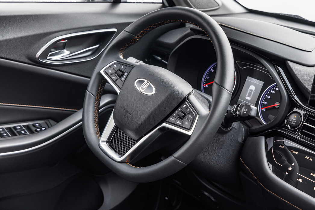 Среди прочих прелестей бытия стоит отметить функцию открывания-закрывания водительского окошка одним касанием, климатическую установку, круиз-контроль, камеру заднего вида, парктроники и возможность запуска двигателя клавишей. Есть также датчики температуры и давления в шинах, причем установленные отдельно в каждом из колес. В салоне с комбинированной отделкой полно отсеков и ниш для всякой всячины, включая дверные карманы, готовые вместить «полторашку» санкционной «Колы». Вот только ручки этих самых дверей не предусмотрены для полноценного хвата — закрывать их придется пальцами.