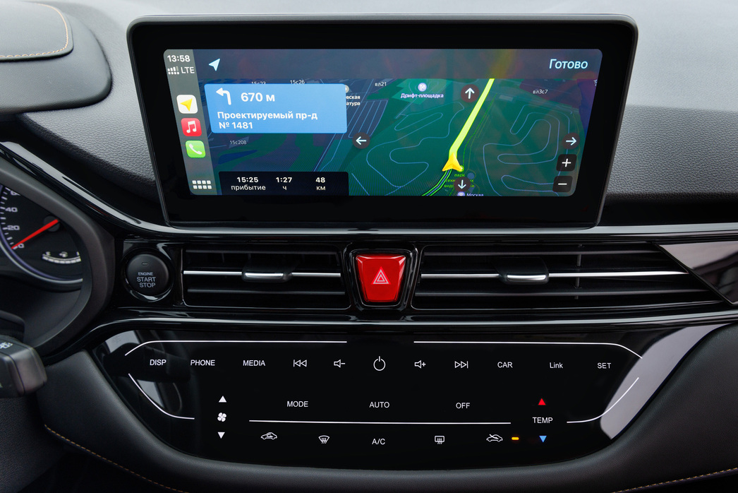 Вместо олдскульного «ручника» — электронный стояночный тормоз, автоматически прикусывающий колодки и ослабляющий хватку нажатием не на тормоз, а на газ. Для толкания в пробке — самое то. Причем работает он довольно нежно и едва заметно, без характерных рывков.