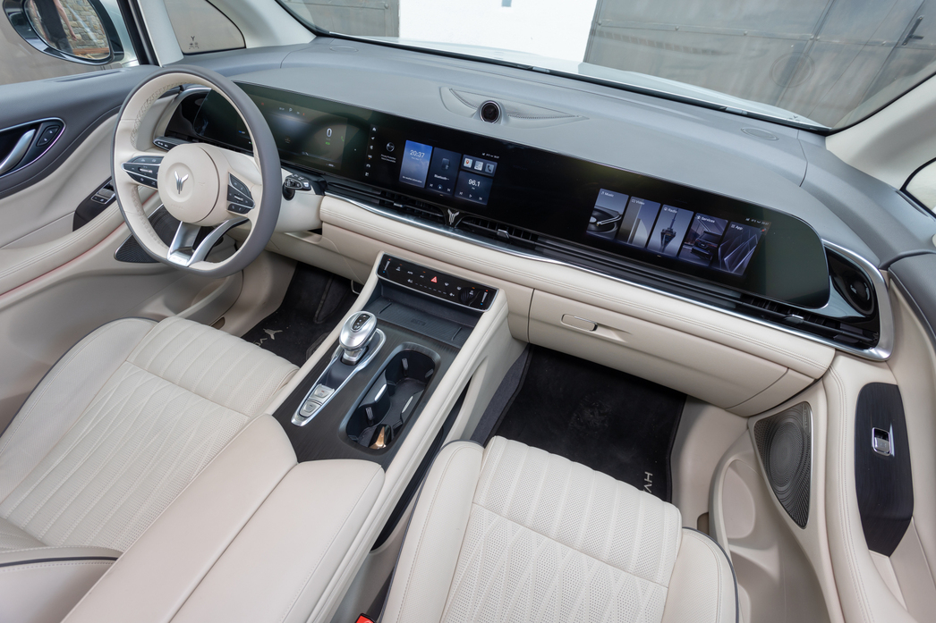 Мультимедийно-развлекательный центр позволяет выбирать различные цветовые решения и варианты интерактивного отображения органов управления, а также воспроизводить видео, переключать картинки с камер кругового обзора и активировать систему ночного видения, которая, к слову, и днем окажется отличным подспорьем при парковке в труднодоступных местах, что особенно актуально для столь внушительного по габаритам автомобиля. Впрочем, минивэн способен припарковаться и самостоятельно, заботливо предупредив пешеходов и велосипедистов о намерении совершить маневр. Кстати, Voyah умеет распознавать не только людей и автомобили, но и довольно мелкие препятствия и даже зверей.