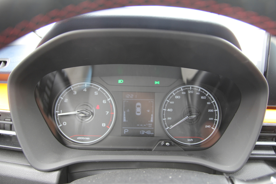Понравилась приборная панель с понятными аналоговыми шкалами и небольшим монохромным дисплеем между ними. Немного удивило только отсутствие информации о среднем расходе топлива. Есть лишь мгновенный. На своем месте 8-дюймовый экран мультимедиа. Его функционал невелик, но законектиться со смартфоном можно без проблем. А что еще надо? К тому же для управления климатом, а точнее, обычной печкой и кондиционером, помимо тачскрина можно использовать ряд клавиш, который расположился чуть ниже. Очень функционально. Используя блок кнопок на руле, можно вообще избежать необходимости водить пальцем по стеклу при «медианужде».