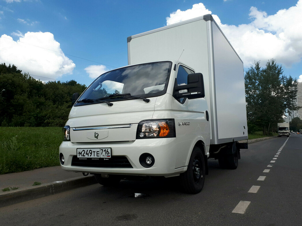 Машина достаточно компактная, что и понятно. Все же китайцы проектировали ее, заглядываясь на Porter. Существуют различные варианты надстроек — «борт», изотермический и промтоварный фургоны. А бескапотная компоновка позволяет установить и кузов повышенной вместимости объемом 11 «кубов». Тут как раз такой на 4 европалеты. Получается, что в высоту «Арго» примерно как «Газель», а длина — 3,4 метра. Полная масса — 2,5 тонны, что дает возможность без проблем колесить по центру той же Москвы, не опасаясь пресловутого «грузового каркаса», а для управления машиной подойдет легковая категория «В».