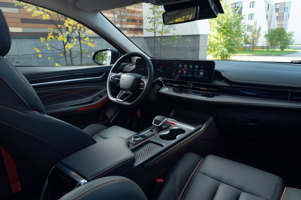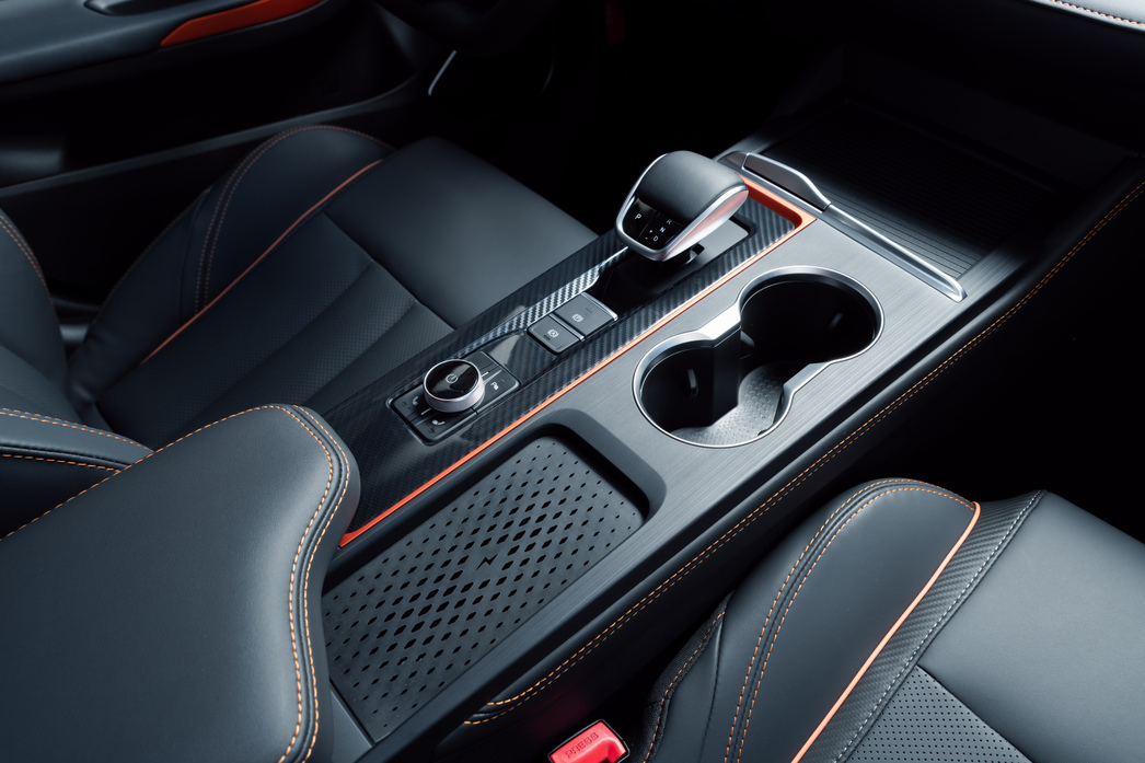 Впечатления от яркого салона однозначно позитивные. Сделано со вкусом, «О-модно», не даром Omoda настойчиво культивирует собственную техно-fashion-ДНК. Cпаркой двух 10,25-дюймовых мониторов перед водителем нас нынче не удивишь, видали и побогаче, но отделка интерьера в техно-стиле с яркими оранжевыми акцентами и вставками под карбон скучать не дает.
