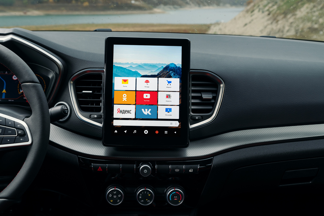 В салоне авто тоже все пропитано спортом. Не в том смысле, что там запах, как в полуподвальном тренажерном зале, а чувствуется дух скорости. Накладки на педали выполнены из рифленой нержавейки с прорезиненными вставками. Сиденья анатомической формы с ярковыраженной боковой поддержкой специально для версии Sportline получили новый наполнитель. Кстати, сидушки а-ля спорт мне никогда не нравились, особенно в долгих вояжах: толком не усядешься как тебе удобно, поясничная подпорка не ярко выражена, от чего спина начинает быстро ныть, и сами «ковши» жесткие, как деревенская скамейка. Но в случае с Vesta Sportline подобных претензий не возникло вообще никаких.