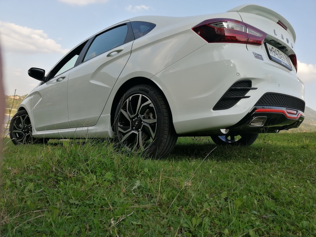 Благодаря заниженной на 2 сантиметра от стандартной версии подвеске, расширенной на 18 мм колее (из-за чего даже пришлось делать новые крылья из пластика), 17-дюймовым эксклюзивным дискам, модным бамперам и элегантному спойлеру на крышке багажника Vesta выглядит не просто спортивно, а вызывающе дерзко. Впрочем, одной спортивной внешностью дело не ограничивается.