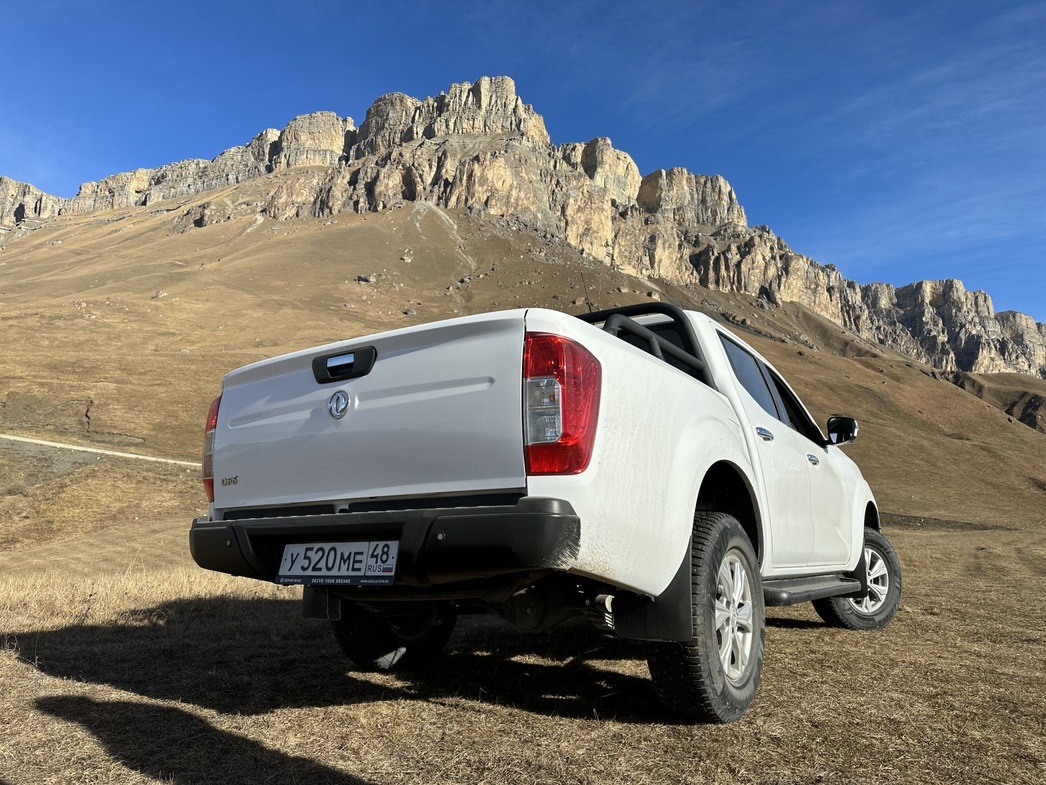 По полному приводу системы part-time и по раздатке все понятно, они созданы в тесном сотрудничестве китайцев с такими именитыми производителями, какBorgWarner и Bosch. Так что некая уверенность в надежности новинки рынка уже есть. Ну а настроения добавляют довольно неожиданные для такого класса автомобилей цветовые решения — ярко-желтый, ярко-синий, красный и т. д. В топовых комплектациях салоны отделаны красивой кожаной обивкой и большими 9-дюймовыми экранами. А защитные дуги двух видов на выбор в кузове входят в стандартное оснащение любой версии DF6. Ну а чтобы окончательно убедиться в недюжинных возможностях пикапа, мы отправились в горы Кавказа.