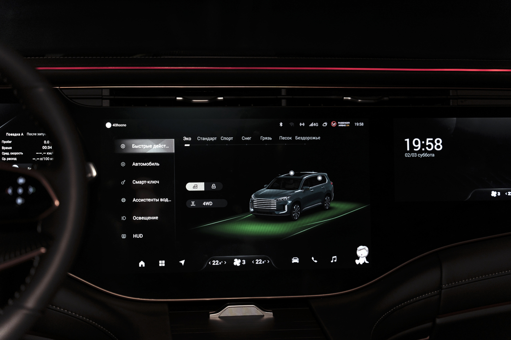 Испытать в деле остальные режимы езды, коих в общей сложности теперь семь, нам не удалось — маршрут тест-драйва предусматривал лишь ровный асфальт, немного нежной грунтовки и короткий снежный участок, на котором не зароется даже переднеприводная «пузотерка». Поэтому здесь — только теория: Exeed VX обзавелся новой электрогидравлической муфтой BorgWarner шестого поколения, а вместе с ней появились и те самые дополнительные режимы «Снег», «Грязь», «Песок» и «Бездорожье».