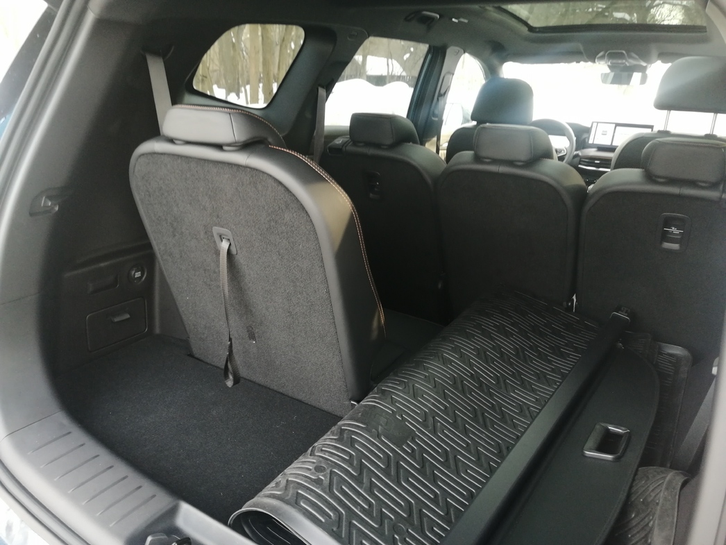 Ну и пока мы не покинули багажный отсек, приведу цифры. Когда третий ряд сидений приведен в боевое положение, объем багажника составляет всего 227 литров. Убрали сидушки в пол и объем тут же увеличили до 628 л (для сравнения: грузовой отсек седана LADA Granta составляет 520 литров). А ежели пожертвовать вторым рядом сидений во имя сумок, коробок и чемоданов, то вместимость составит внушительные 2360 л.
