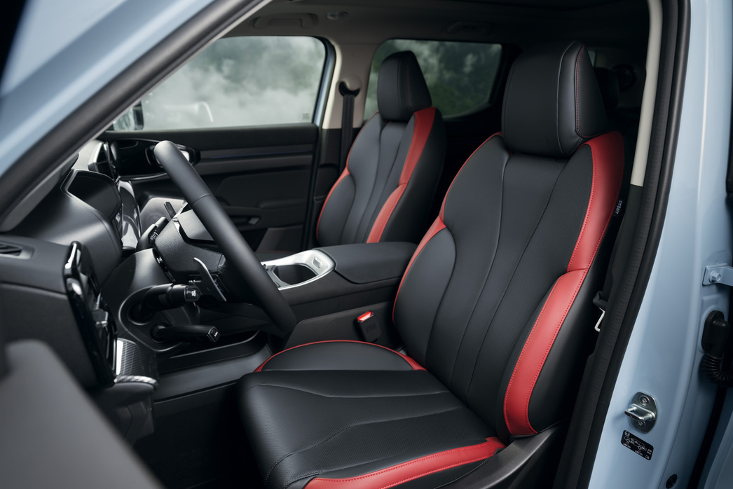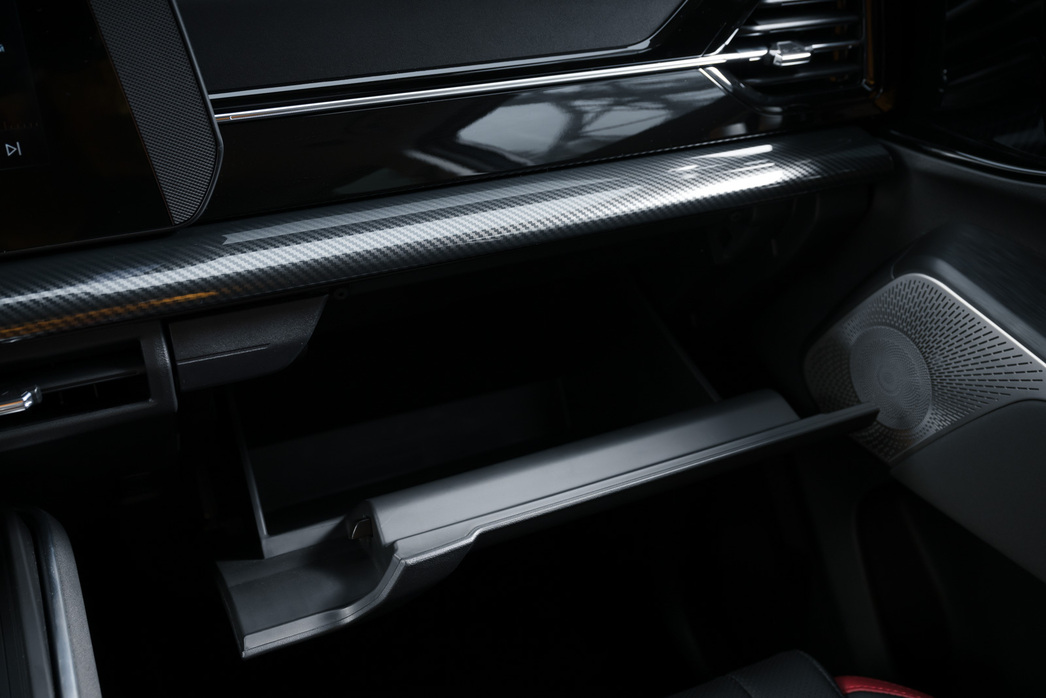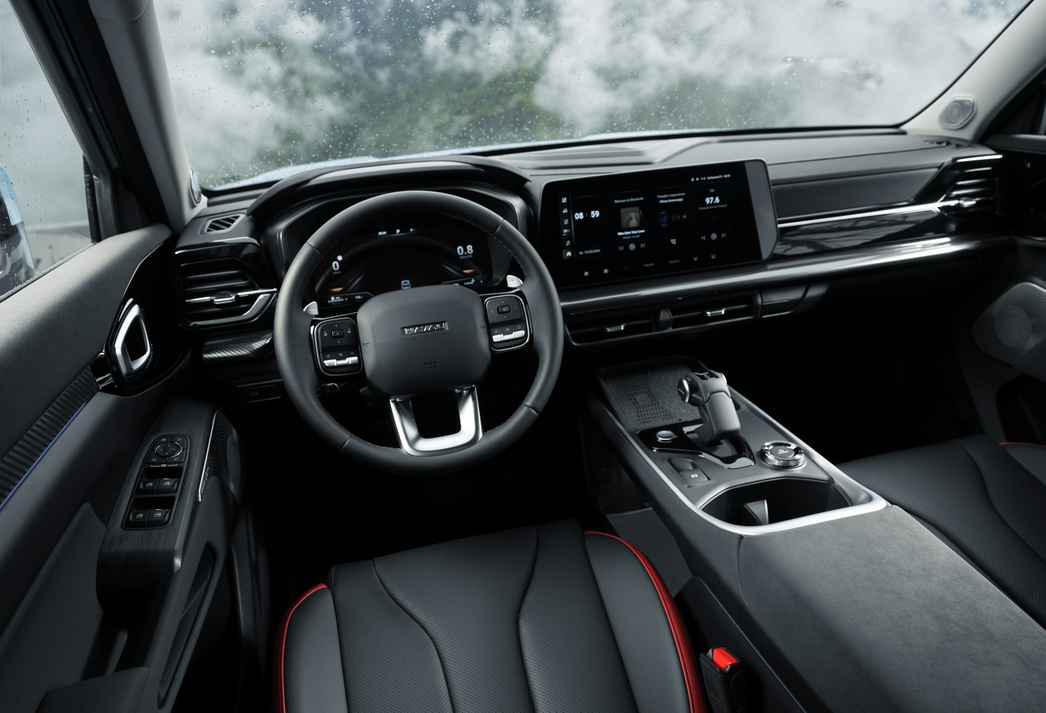 Интерьер новинки, равно как и ее экстерьер, мне, что называется, «зашел». Добротная отделка мягкой экокожей, гармоничные вставки под карбон и хром. Строго, дерзко и современно — ни малейшего намека на вычурность, от которой, впрочем, Haval давно избавился. Особое внимание обращает на себя «самолетный» селектор коробки передач, перекочевавший из Tank 300. И панорамная крыша площадью 1,1 м² — самая крупная в классе, между прочим.