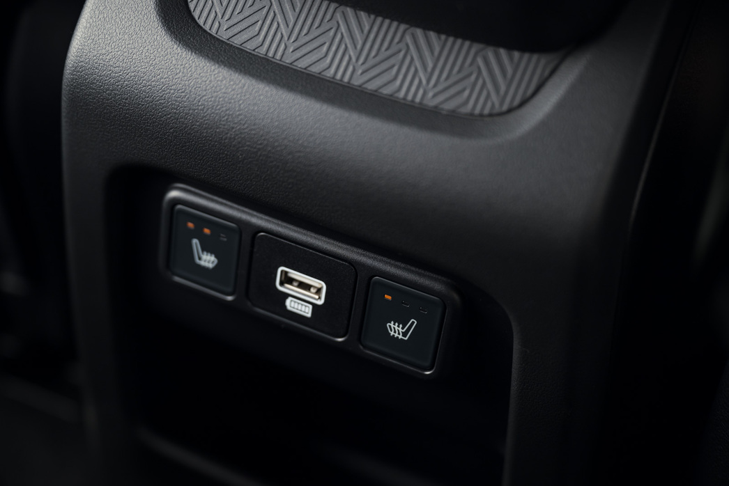 Журить китайцев за неэргономичность кокпита не приходится. «Баранка» регулируется и по высоте, и по вылету — диапазонов хватает. Сиденье удобное — с довольно длинной подушкой, хорошей боковой поддержкой и «запоминанием», внимание, аж трех положений настроек. Поворчу, с вашего позволения, только на «сенсорность»: физическая клавиша на «рабочем месте» водителя, если не считать «старт-стоп», Mode (режимы движения), а также кнопки на руле и дверях, лишь одна — «аварийка».