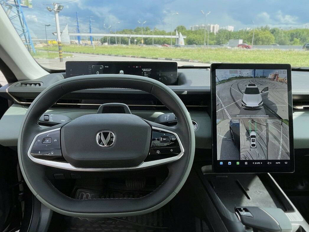 Что еще по «городу»? Changan Lamore чуть короче бывших бестселлеров сегмента, седанов Toyota Camry и Kia K5, но автомобиль все равно длинный, что на тесных парковках может создавать трудности. Но лишь в теории — на практике их нет. Система кругового обзора выводит на планшет мультимейдики аж четыре изображения с камер — приложиться о другую машину, столбик или бордюр сложно. Жаль только, что нельзя запрашивать эти «картинки» нажатием кнопки — к той же «звездочке» на руле, например, эта функция не привязывается.