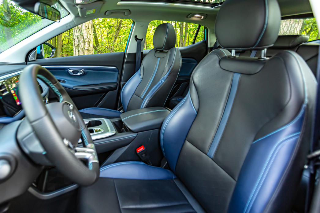 На салон, к слову, запала хватило: одни синие, в цвет кузова, ремни чего стоят! Пусть экранов всего два — рабочий, который с приборами, и мультимедийный, но оба постоянно задействованы. И, о чудо, Apple Carplay полновесный, а не китайские «зеркала». Android Auto тоже есть. Воистину, подумали да позаботились, пусть и «отваливаются» телефоны, по старой китайской привычке, постоянно.