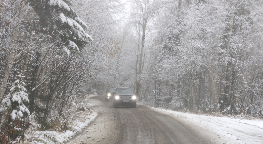 Итак, с утра мы быстренько пробежались вдоль ветреного байкальского берега до Мысовых тоннелей. Ими, по сути, западный участок БАМа заканчивается. Наш маршрут почти пройден, пора возвращаться домой. Но в этот раз на перевалах заметно больше снега, и все надежды были на внедорожные режимы. Какой из них выбрать, когда идешь в колонне вниз под уклон на скорости порядка 80-90 км/ч, а под колесами опасная смесь глины и снега?
