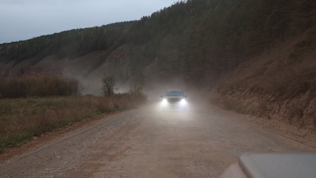 Асфальт заканчивается. Сбрасываем скорость до 80, 70 км/ч. Со временем накапливается усталость, глаза «замыливаются», не замечая выпирающий на дороге острый камень или промоину. Машине достается сильнее. Но впереди еще полторы-две сотни километров по бездорожью.