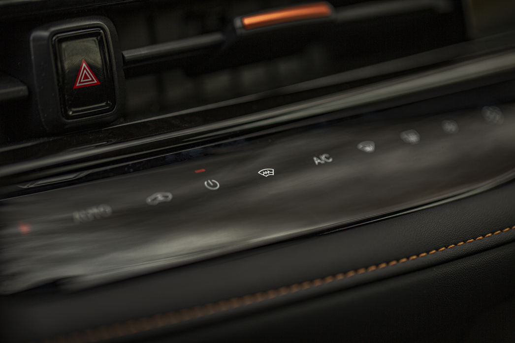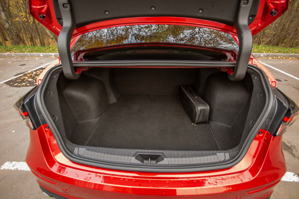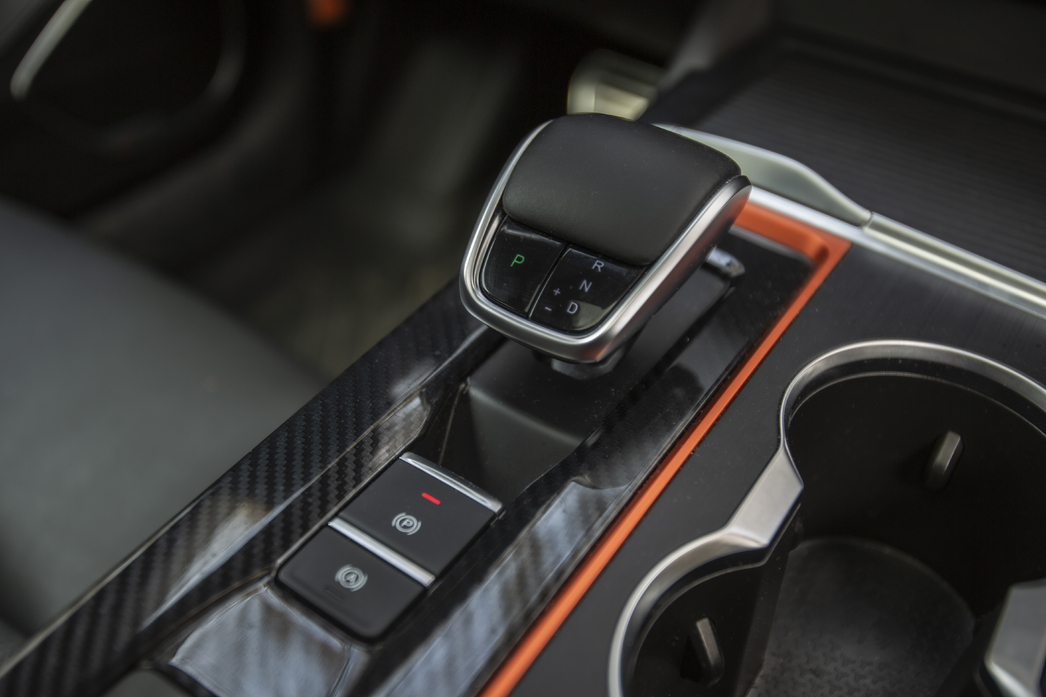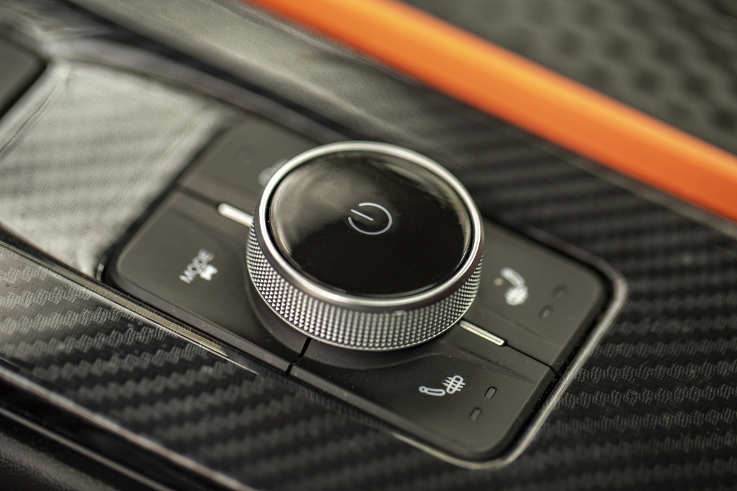 В салоне тоже полно отличий: большущий «слитный» экран, в котором и приборы, и мультимедийка, иной селектор трансмиссии и яркие вставки в обшивку. Одни красные ремни безопасности чего стоят! Передние кресла, включая водительское, в целом критику выдерживают, настроек много — удобно устроиться, пусть и не быстро, можно.