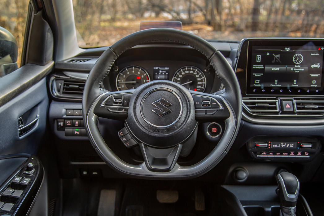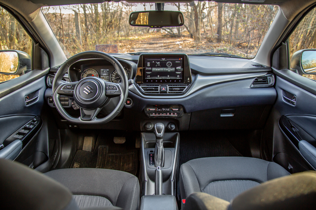 День за рулем Suzuki Baleno, два, три — машина нравится! Рука сама находит нужную клавишу, которая именно клавиша, так что можно нажимать, не глядя. Исполнение и архитектура салона, которая сегодня доступна только богатым. Да, простая, да, звезд с неба не хватает, салон — «тряпка», пластик — кондовый, без изысков.