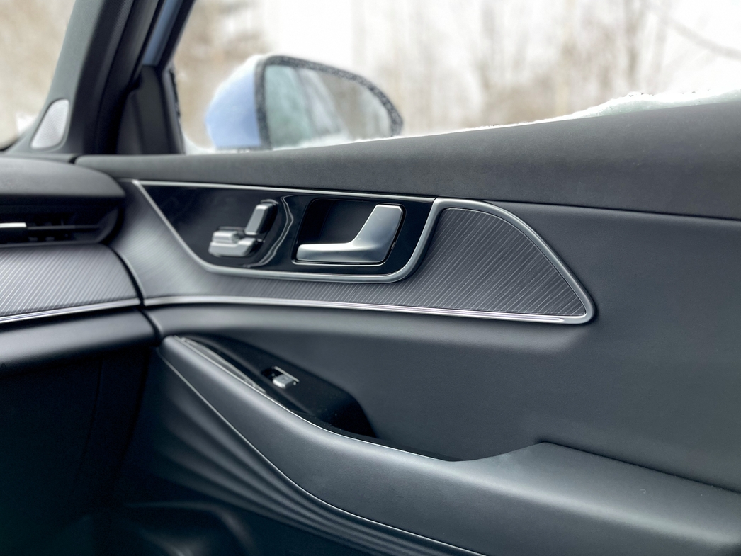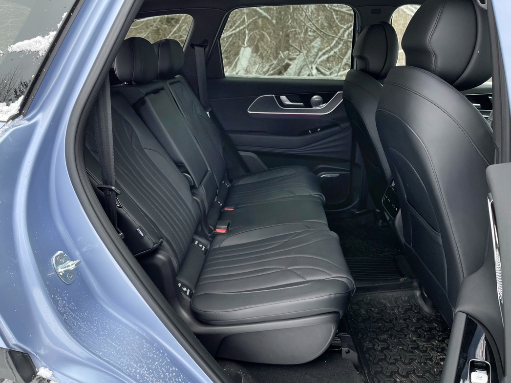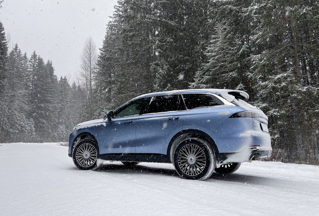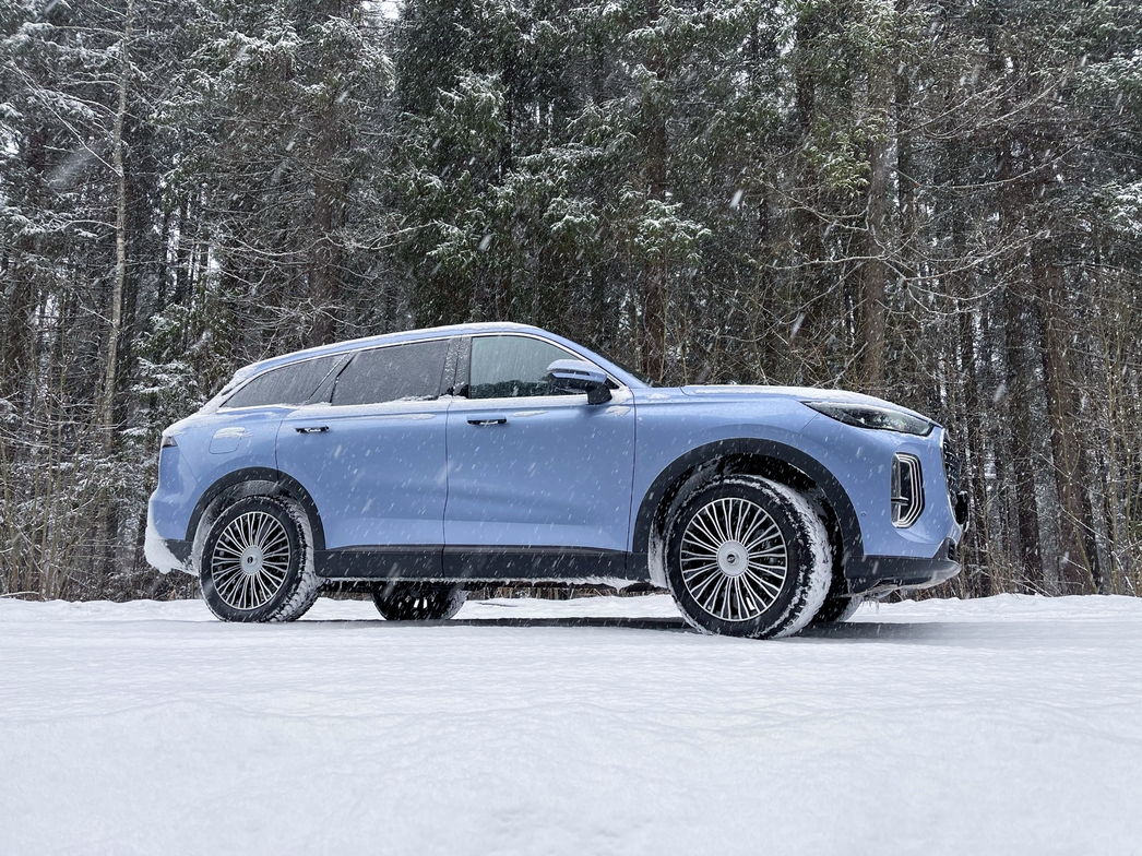 Также стоит отметить выдвижные ручки дверей — их электропривод был усилен специально для России, чтобы они лучше сопротивлялись обледенению. Колёсные диски диаметром 20 дюймов с необычным рисунком — это, пожалуй, самый яркий элемент дизайна. Tiggo 9 выглядит так, что, если и привлекает внимание, то не потому, что пытается, а потому что он просто хорошо сбалансирован.