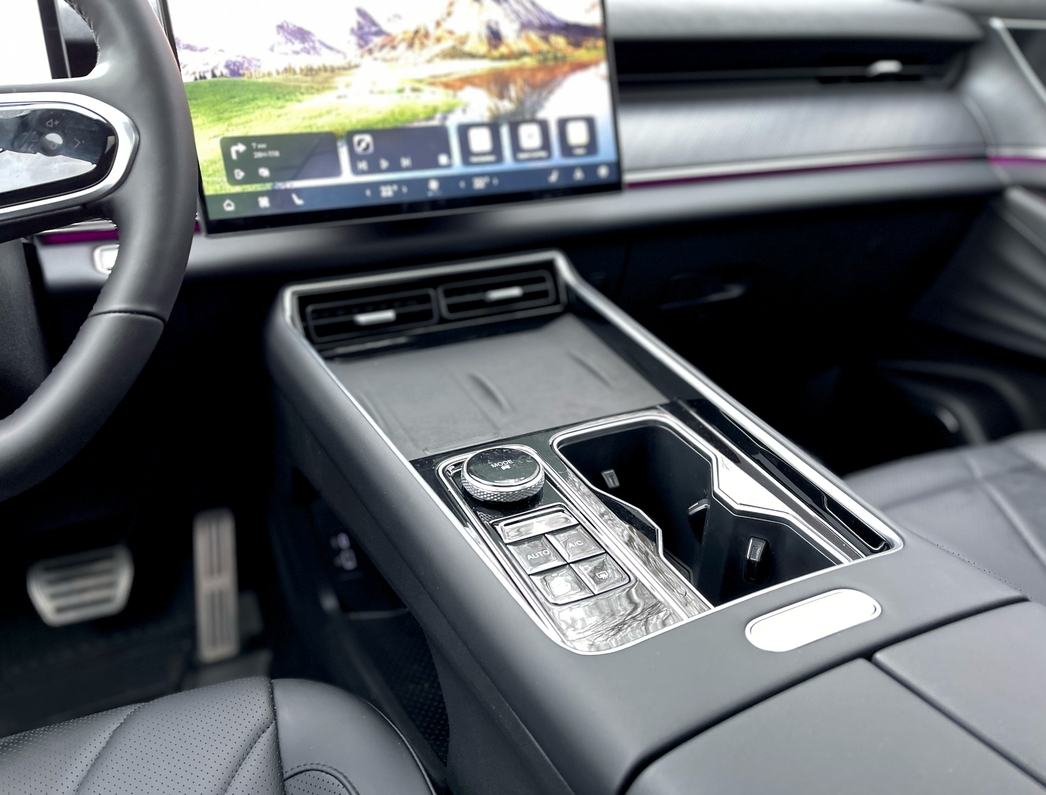 Управление коробкой передач на рулевой колонке оказалось удобным. К левому рычагу привыкаешь быстро, и оно не вызывает неудобств. На месте традиционного селектора на центральном тоннеле расположены два слота для телефонов, одно из которых оснащено мощной беспроводной зарядкой с функцией охлаждения. Это решение явно сделано с учётом потребностей водителя, который всегда может быстро «подпитать» устройство, не переживая за его перегрев.