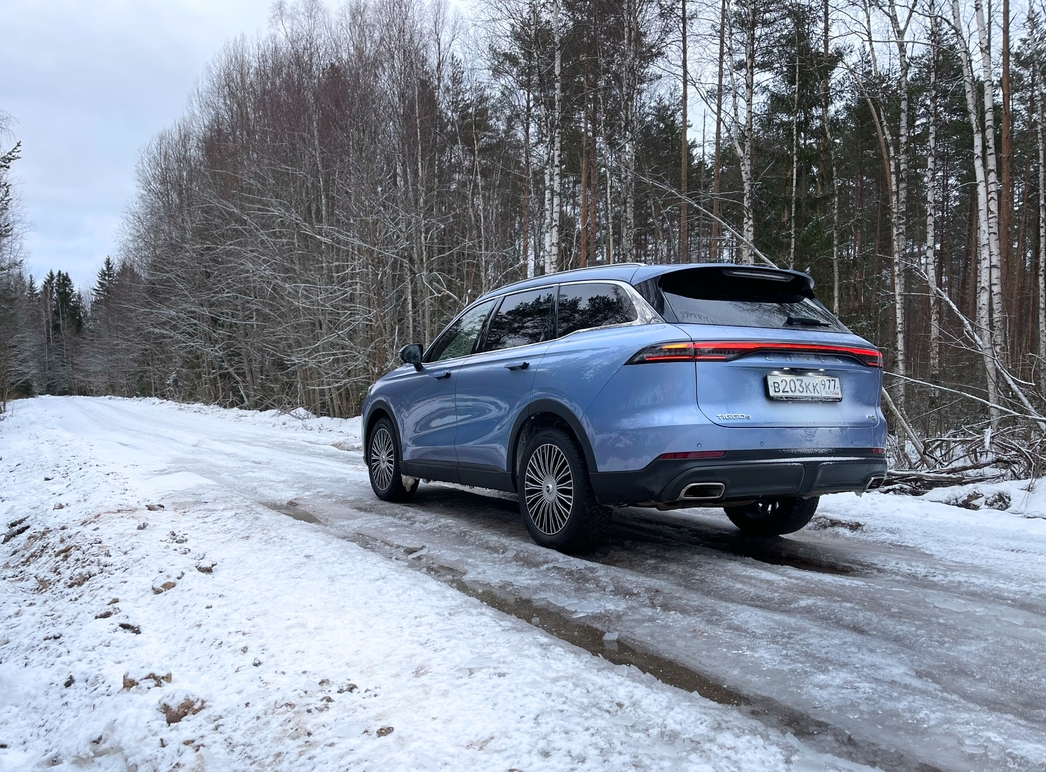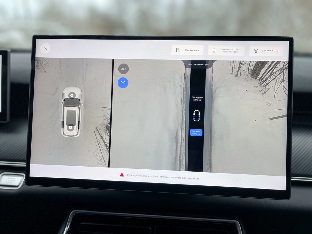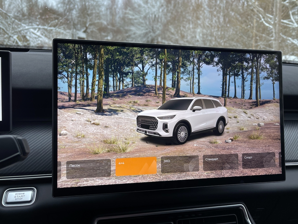 Внедорожные пресеты друг от друга практически не отличаются. С разбитой грунтовкой Tiggo 9 справляется уверенно, но на серьёзное бездорожье лучше не забираться — несмотря на заявленный дорожный просвет 200 мм, диски и бамперы окажутся в зоне риска.
