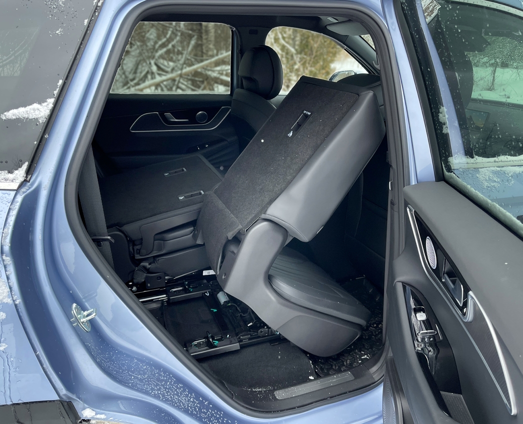 На среднем ряду комфортно разместятся трое некрупных пассажиров. Правда, в кроссовере длиной 4,8 метра высоким людям может не хватить места для ног из-за пухлых спинок передних кресел. Сиденья второго ряда регулируются электроприводом в нескольких направлениях, в наличии отдельный блок климат-контроля, пара USB-портов и дефлекторы вентиляции.