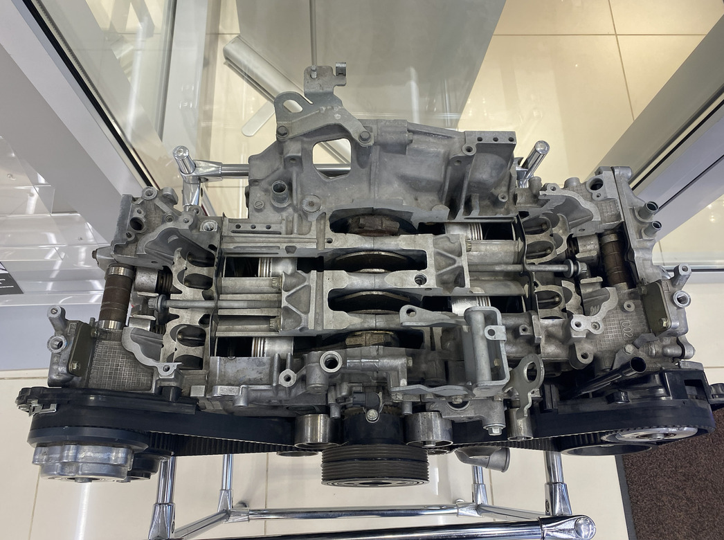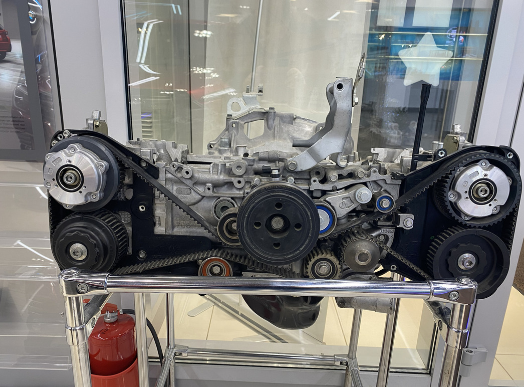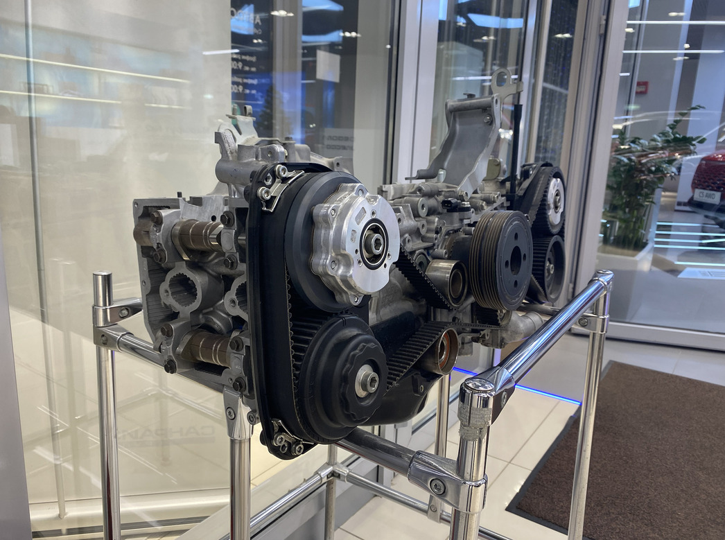 Божество «Субару» — он, оппозитный мотор, который нужно один раз увидеть, чтобы понять отчего же все «субаристы» такие «субаристы». Движок плоский, «горшки» смотрят в противоположные стороны, оттого центр тяжести предельно низок. И этот 2,5-литровый 185-сильный агрегат заставляет далеко не мелкий кроссовер прям лететь, беспощадно доминирую над всей дорогой.