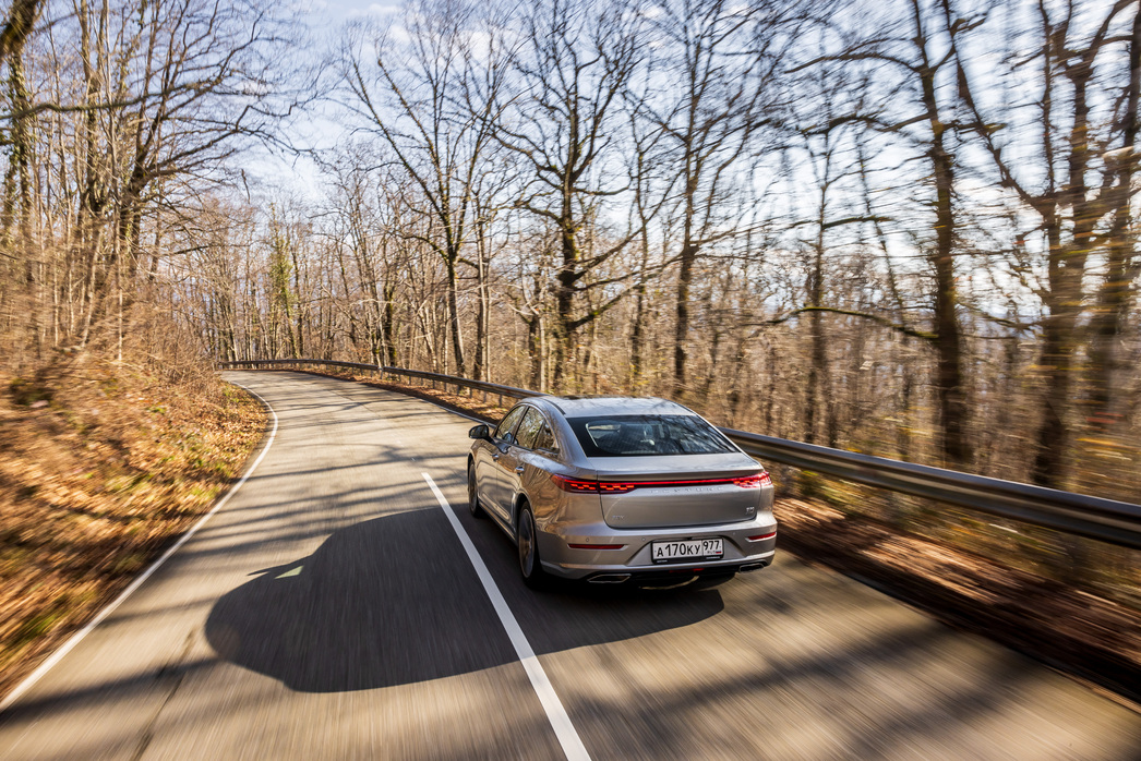 Руль по-китайски пуст, однако сами настройки подвески инженерам удались — с предложенными сочинскими дорогами неровностями справилась на твердую четверку. Возможно, она чуточку жестче нужного, за что и потеряла один балл. Платой выступает уверенное движение как на прямике, так и в поворотах: ледяное испытание, по понятным причинам, нам провести не удалось, но по асфальту Bestune B70 едет, будто по рельсам. И никакие стыки-ямы ему неудобств не доставляют.