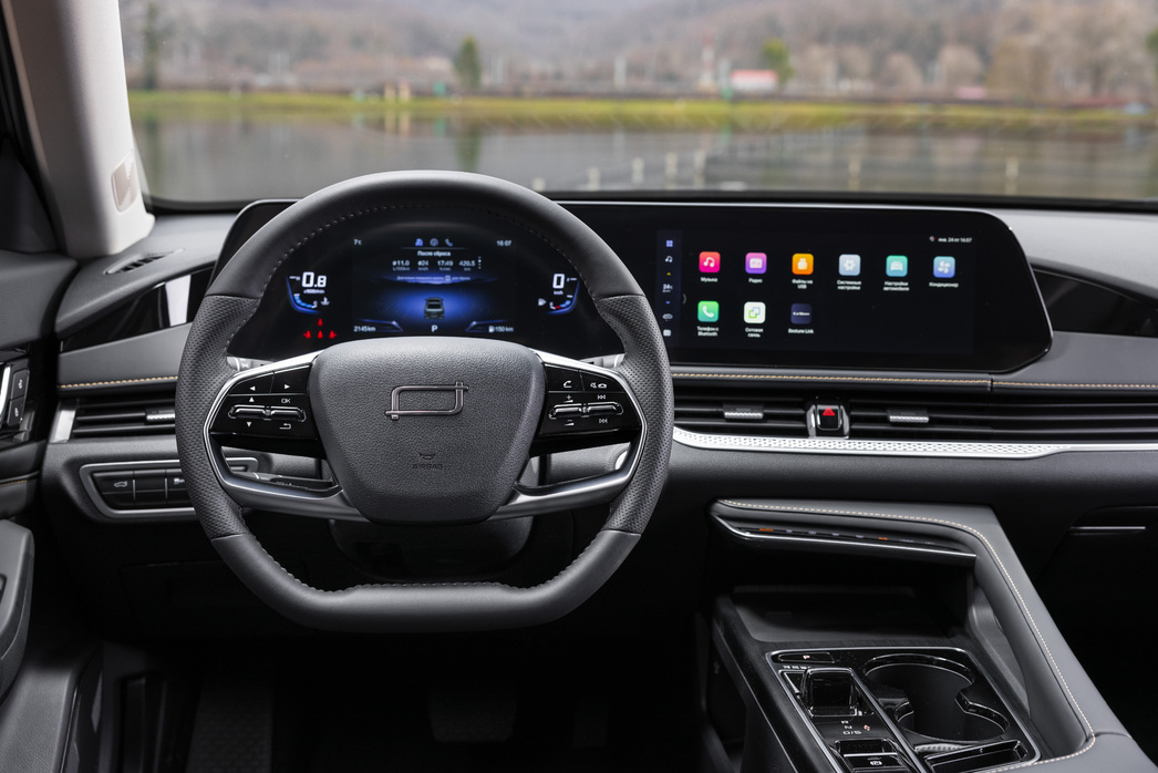 В салоне тоже умудрились не наворотить: цыганского шика, коим славятся многие авто из КНР, не видно, традиционные уже два дисплея слились воедино, далее все вежливо, если не сказать — строго. Кресла, к слову, обладают чарующе длинной подушкой, что само по себе — сверхопция для «китая», но подогрев — только спереди.