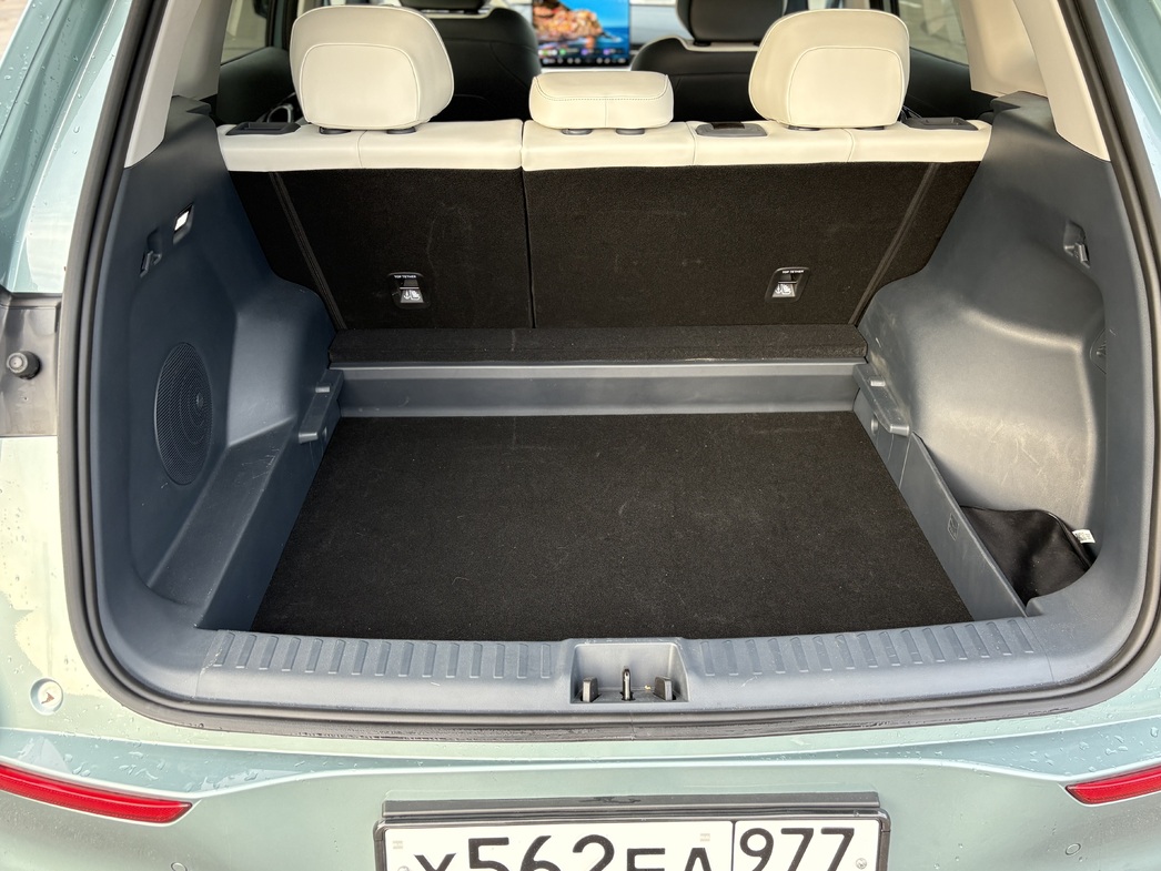Зато если сложить задние сиденья (спойлер: они складываются почти ровно), можно получить целых 1877 л. Правда, зачем столько места в машине, которая вряд ли уедет дальше дачного участка без подзарядки — вопрос философский.