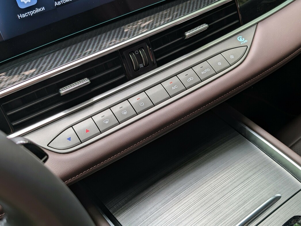 Рулевая колонка регулируется как по высоте, так и по вылету, причем диапазоны настроек довольно широкие. Приборная панель прекрасно читается даже при ярком солнце. И еще одно решение, внедренное по просьбе российских покупателей — новый блок крупных и удобных физических кнопок для управления «климатом». К слову о «погоде в доме»: Tiggo 7L уже в «базе» располагает полным «зимним» пакетом и функцией дистанционного запуска мотора.