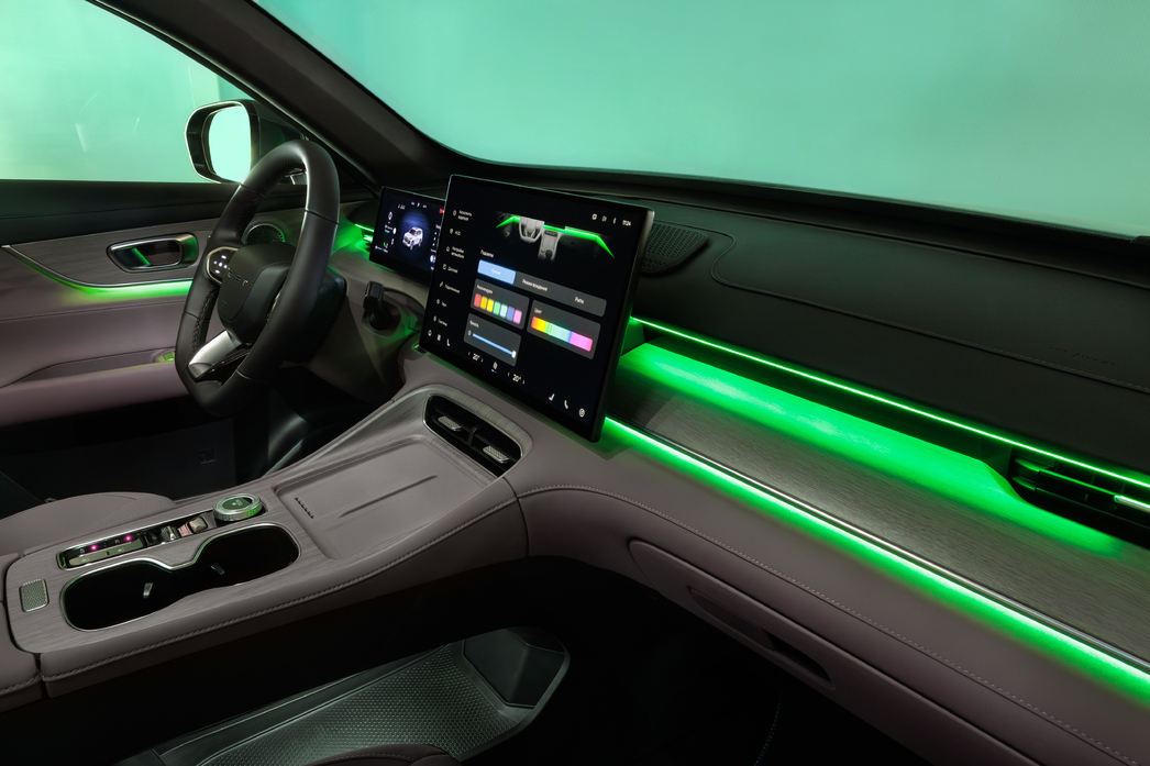 Ниже — два слота для довольно крупных смартфонов (место нашлось после того, как рычаг переключения передач превратился в правый подрулевой переключатель), но с беспроводной зарядкой только тот, что ближе к водителю. Приятно, что он охлаждается, не давая мобильнику нагреться, что сплошь и рядом мы наблюдаем у китайских конкурентов российской машины. Ну а совсем ближе к полу к вашим услугам просторный отсек с USB-разъемами. Здесь, кстати сказать, вполне можно разместить и мужскую борсетку, и messenger bag, и дамскую crossbody.