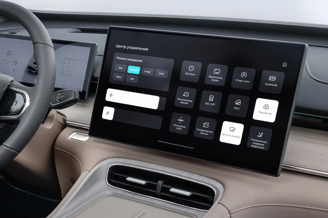 Сиденья и у «рулевого», и у переднего пассажира широкие, с хорошей боковой поддержкой, обогревом «пятой точки» и спины, вентиляцией. А диапазона их настроек хватает, чтобы даже рослые люди нашли практически идеальную посадку. Рулевая колонка регулируется по вылету и высоте, проекционный дисплей хорошо читается, как и 10,3-дюймовый экранчик приборной панели.