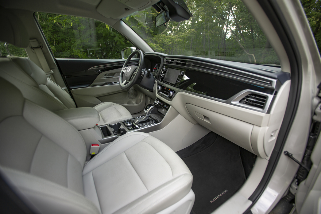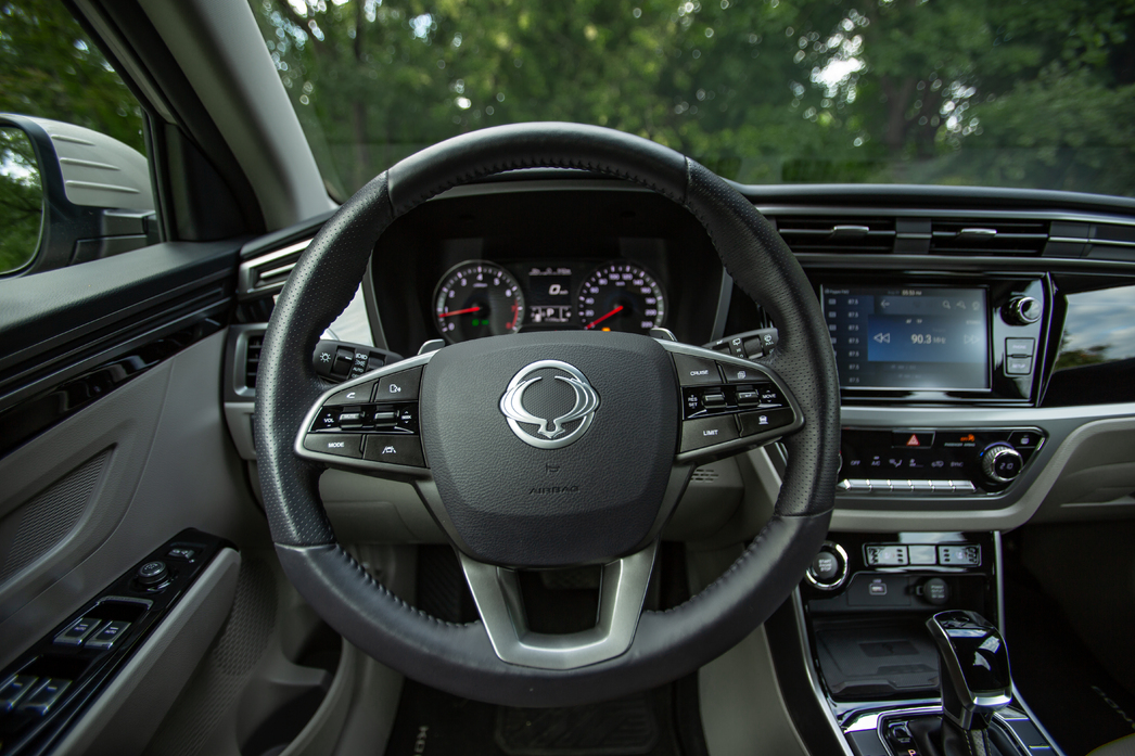 Зато шторка всегда на месте в любой комплектации, как и полноразмерная «запаска». Колеса каким-то чудом обошлись без «изоленты»: Korando обут в 18-е шины размерностью 235/55, что только добавляет машине комфорта в эксплуатации. Резина — корейская, мягкая и «держаковая». Дорожный просвет — 182 мм: для целевого использования город-трасса-дачная грунтовка — более чем достаточно.
