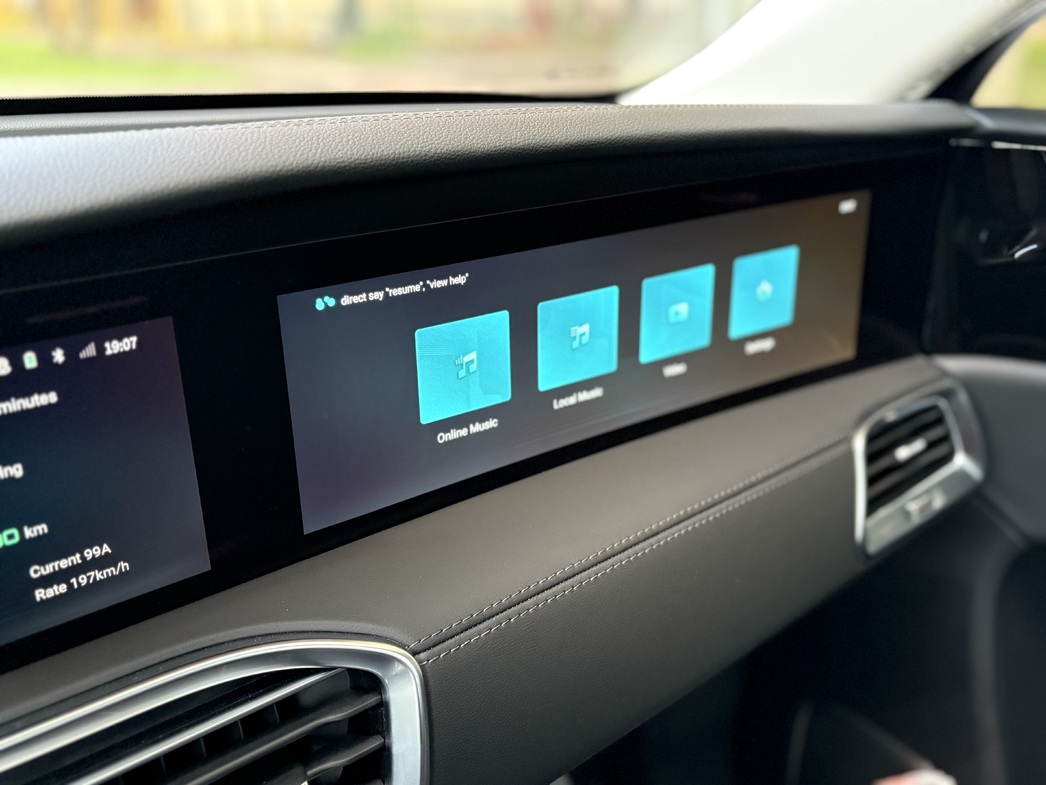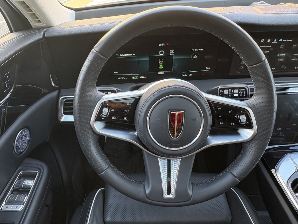 Тронулись с места. Под «капотом» (точнее — на обеих осях) Hongqi E-HS9 трудятся два электромотора, суммарная мощность которых достигает 405 кВт⋅ч или 551 л.с. И такой табун вроде как обещает сумасшедший разгон. Увы, полноприводный электромобиль не стремится рвать с места, а набирает скорость плавно.