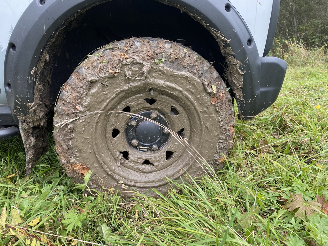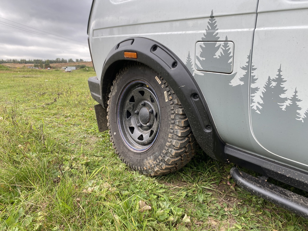 На бездорожье же столь скромные покрышки никакого особого прироста проходимости не дают. Качество самой резины Safari — отдельная песня: она дубовая и не «плющится» даже на низком давлении, но на асфальте трясет так, что пломбы из зубов вываливаются. Диски, красивые и модно-бездорожные, нашей героине не подходят — на ступицу не садятся, вызывая дополнительные вибрации. Спорное решение, но с оговоркой, о которой — позже.