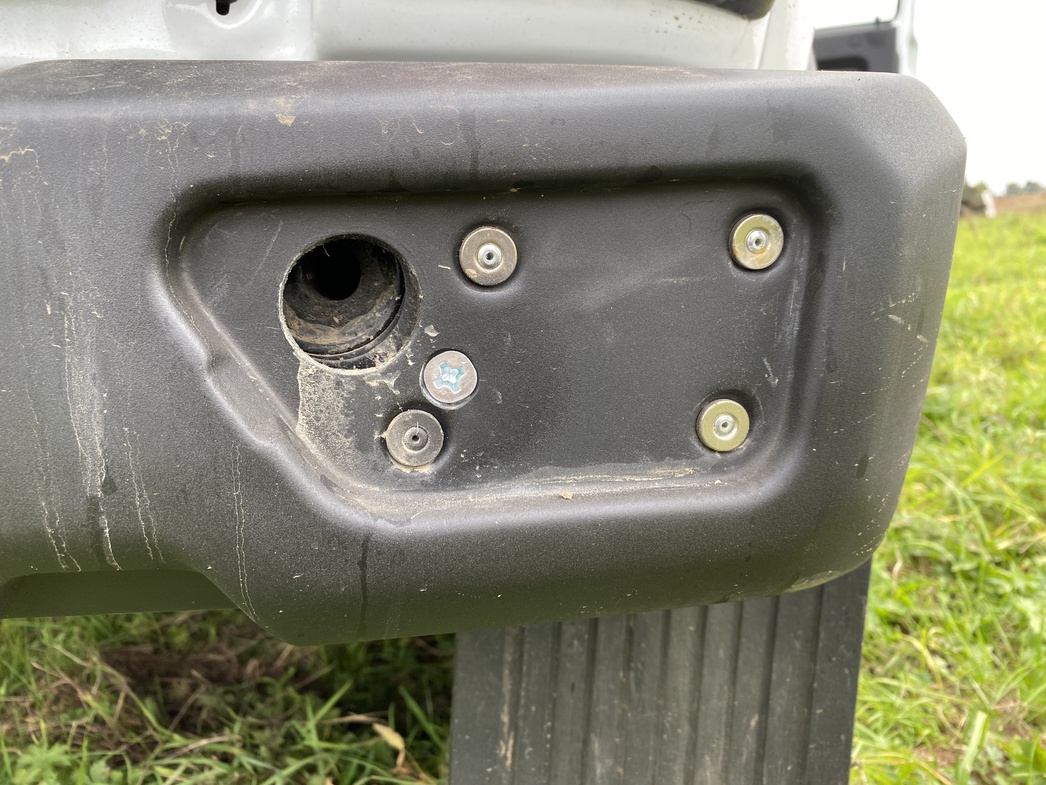 Пару ударов кулаком — и он встал на место, но «осадочек» в виде трещины остался. И задний не без греха: сломать его не случилось, но есть «нюанс». Посадочное место под буксировочную проушину спрятано за красивой декоративной накладкой на магнитах. Конечно, перед выездом на бездорожье накладки сняли — растеряем на тряске. Но добраться до нарезного отверстия под буксировочную проушину удалось только слева — правая оказалась скрыта и недоступна.