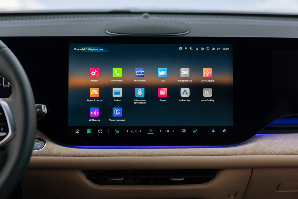 А вот мультимедийная система оставила двойственное послевкусие. С одной стороны, имеется «VK Музыка», что для меня, пользователя именно этого стримингового сервиса, очень удобно. С другой — карты на базе «Яндекса» заставляют нервничать. Как уже было сказано, премьерный тест проходил под Мурманском, где глушилки GPS, кажется, уже стали частью местного колорита наравне с северным сиянием. Маршруты сбивались, перестраивались, а однажды карты и вовсе отказались загружаться, оставив нас наедине с интуицией и дорожными указателями. Насколько это проблема самой системы, а насколько — суровой заполярной реальности, сказать сложно.