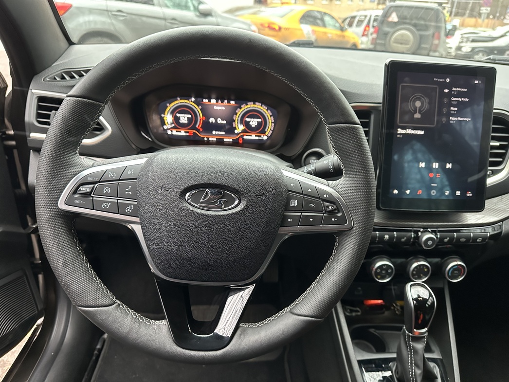 Посередине торпедо разместился большой тачскрин, в который вшита большая часть управления функциями машины, причем работает он вполне сносно, быстро и не «тупит». Кроме того, LADA поддерживает протоколы AppleCarPlay и AndroidAuto, а также может подключаться к интернету.