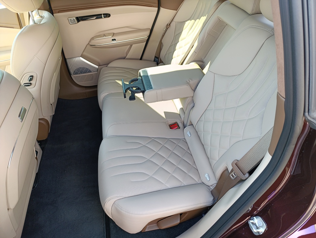 Сзади пространства тоже в достатке, и это несмотря на купеобразный кузов. К сервису тоже нет претензий. На спинке водительского сиденья есть откидной столик, а внизу пассажирского имеется подставка для ног: совсем как в бизнес-классе самолета.