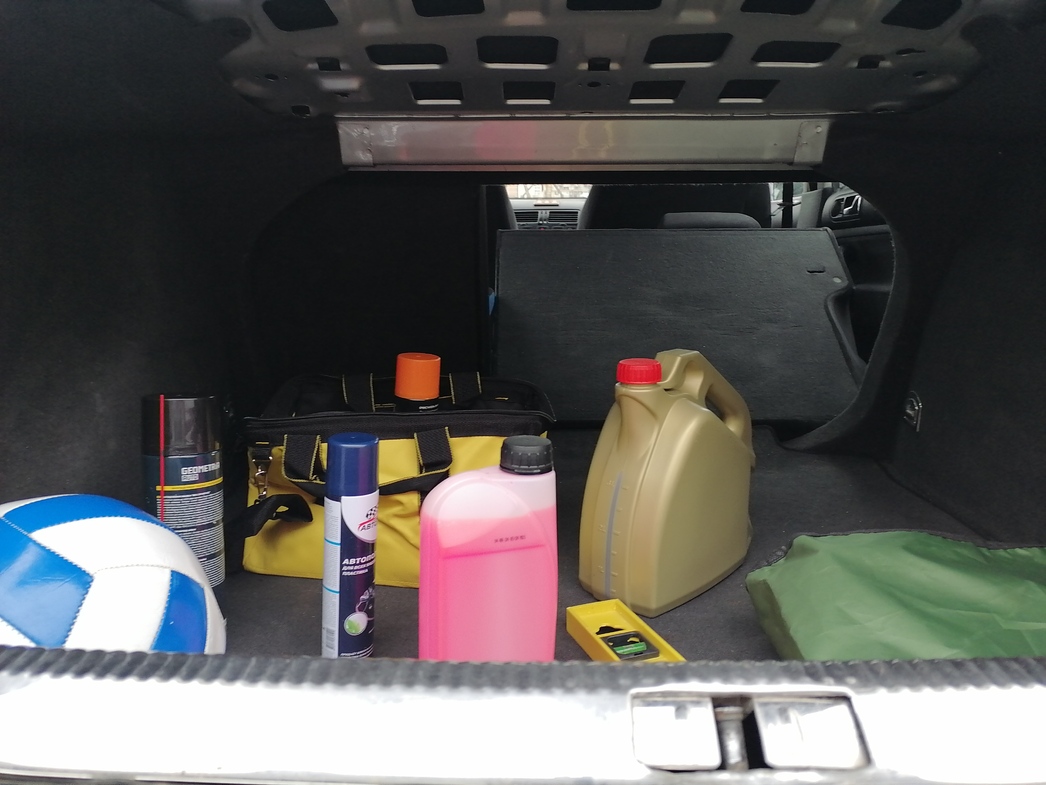 Между передними креслами — подлокотник (регулируется по углу наклона в диапазоне 90 градусов). Также в распоряжении водителя и переднего пассажира — радиомагнитола, выдвигающийся двойной подстаканник, прикуриватель и бардачок, способный вместить кучу полезных мелочей. Кондиционер, соответственно, готов радовать решительно всех, если его не забыли почистить. Объем багажника моей машинки — 453 л (у универсалов он чуть больше, 460 л).