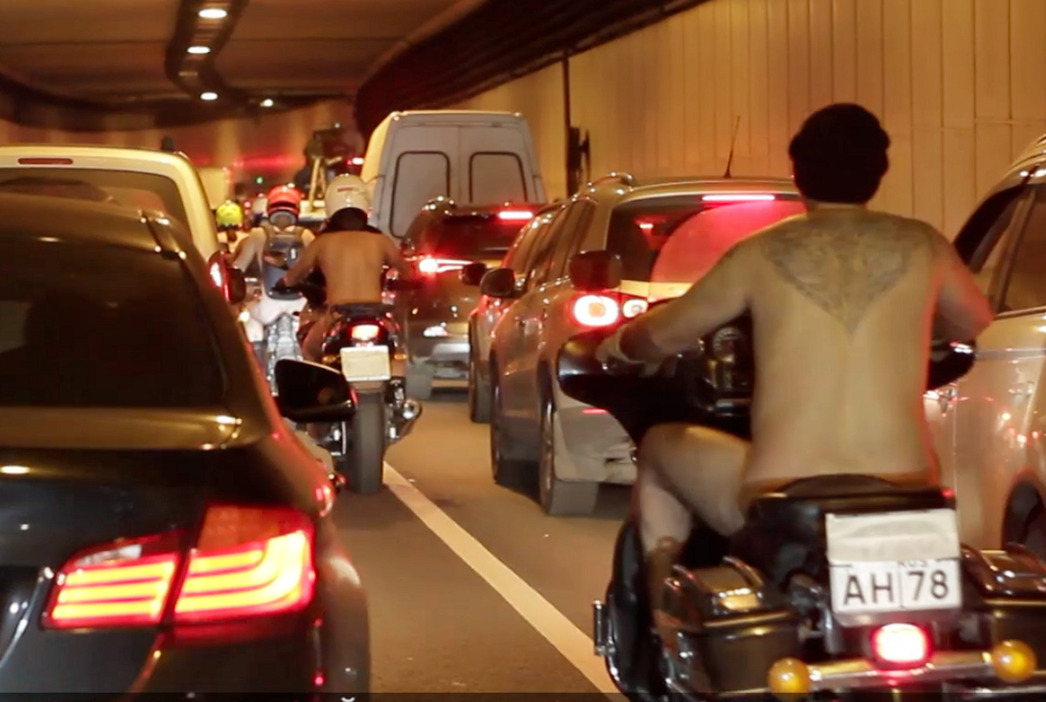 Обычные мотоциклисты, несмотря на теплую осень, закрыли сезон и убрали своих двухколесных коней до весны. А вот члены столичного мотоклуба «Дубасер» решили устроить мотопробег под полуматерным названием, которое, по этическим соображениям, мы полностью привести не можем («…звон»). Даже несмотря на то, что шоу, в ходе которого «дубасеры» катаются нагишом, стало традиционным, отметив в этом году десятилетний юбилей.